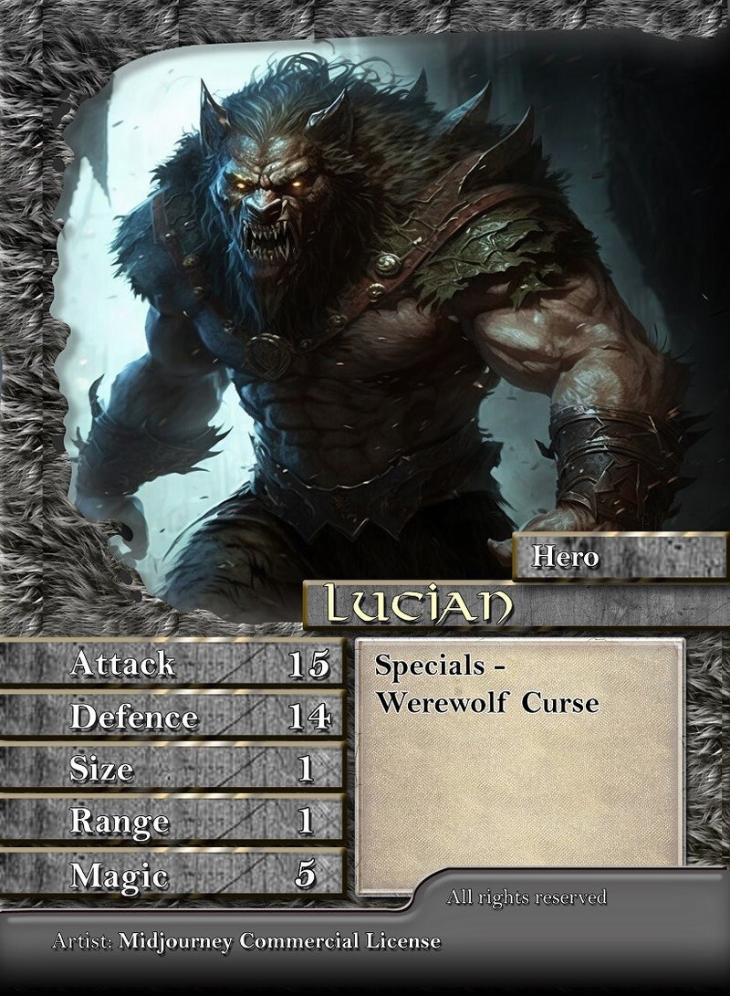 The Hero choices for the Wolven include the Sanctum Warden who has a very high defence and size score which will make him extremely difficult to be defeated. In addition, he gives a bonus to all Moonglade Wardens you have on the field of battle. Or your other option is Lucian who may not be as strong but carries the Werewolf Curse. At Champions level, Fang is a monster for attack and bigger than most lone champions. Or you could take Soren Lycan, a much more balanced fighter and also has the Magic Item ability which will let you take an additional magic item than you would normally be allowed. Finally, there is Whitefur who is the best spellcaster available to the Wolven army. The aim will be to draw The Alpha who is a fierce combat option and boosts standard Wolven on the battlefield. Or of course the great wolf Fenrir as the Titan card of the Wolven, capable of turning the tide of any battle and boosting any Wolf Packs.