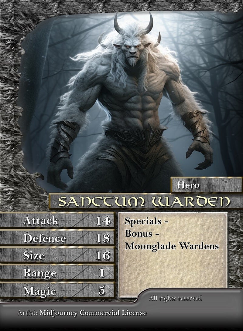 The Werewolf is an interesting Elite option, it is a tough combat unit but even if your opponent beats it there is a chance it gets infected with the Werewolf curse. In a few turns time your opponents card turns into one of your cards and you can play a free reinforcement wherever that card is on the battlefield. Or you could go for the Lone Wolf, an Assassin that is tough in combat but can be used to eliminate any of your opponents cards as long as they have not been revealed, a great safety net. Or you could choose to go for size and power and pick Moonglade Wardens as your heavy hitters.