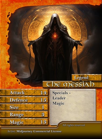 Neither Hero option is designed for combat. Cardinal Baptiste gives you a powerful magic user whereas Archbishop Pious XV lets you cast Blessings. He also boosts any Clerics making casting blessings a lot easier. At Champion level Luthar the Preacher has the Glory of Xanthros ability which significantly boosts your cards close by. Deacon Constatine is better in close combat and has the Magic Item ability so he can have a free Magic Item to boost his ability. Sheng Kang like Monks has the Channel ability so he can use magic score for ranged attacks instead plus also gives a bonus to all Monks. In the reinforcement deck is the Messiah as the Legend card, easily the best spell caster you have. And also, the Wicker Man Titan card, an extremely powerful close combat card.