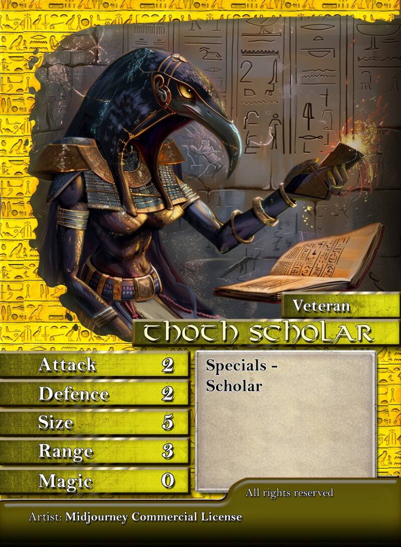For the Aegyptians' education, Ra sought the aid of Thoth, the god of wisdom. Thoth took on the immense task of teaching them all the skills they would need: language, writing, architecture, agriculture, and more. Horus, the god of war, was appointed to train them in combat, preparing them for the inevitable day when they would face the Titans. Lastly, Ra asked Amunet to create a subrace in secret—beings without free will, designed solely to serve as guardians of the gods' temples, ensuring their security even in times of crisis.